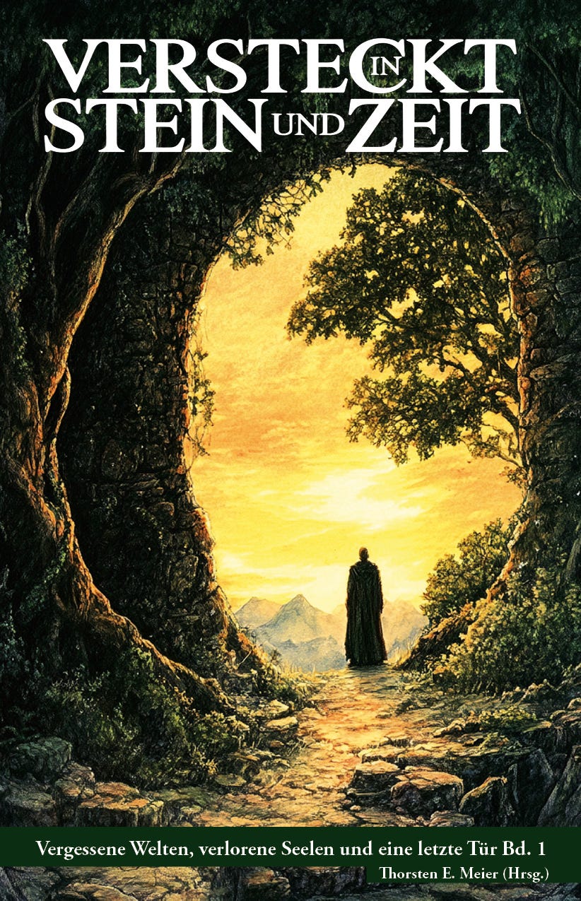 An verborgenen, aus der Zeit gefallenen Orten öffnen sich versiegelte Portale zu anderen Welten, die lange vergessen waren. Die Anthologie "Versteckt in Stein und Zeit" erzählt von dem entscheidenden Moment des Überschreitens – und von den Mächten, Hoffnungen oder Gefahren, die dahinter lauern.